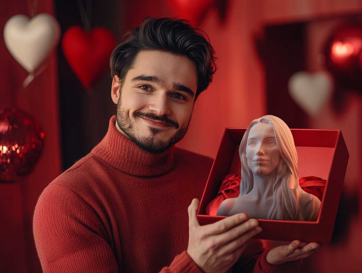 Überrasche Deine Liebsten mit einem romantischen und individuellen Geschenk zum Valentinstag! Ein 3D-Portrait von KREAVO ist nicht nur ein originelles Präsent, sondern auch eine bleibende Erinnerung an oder für Deine Lieblingsmenschen.